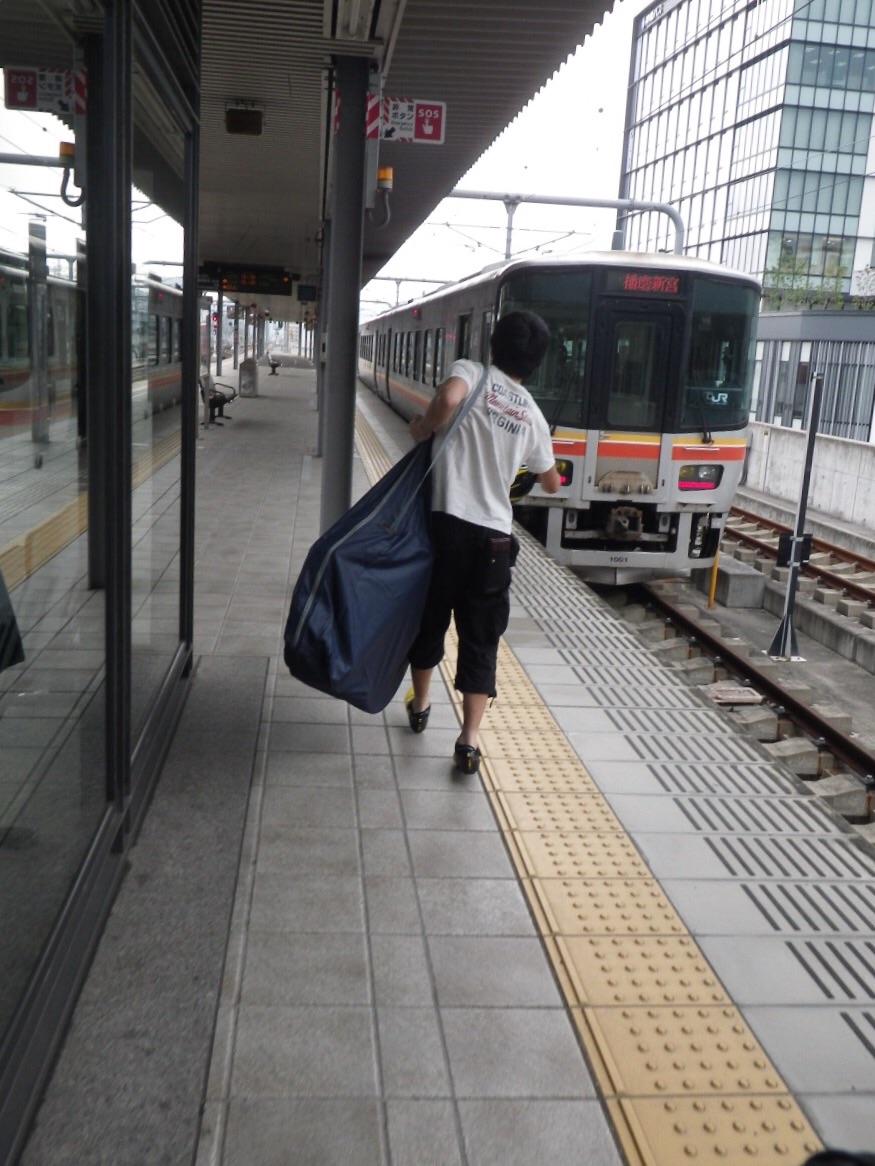 2015/06/21 Category : Road Bike 源太橋TTから始まる輪行の旅 金曜日にブログにて輪行同行者を募ってみたが…反応なし…輪行マスターのグリさんクワさんの書き込みを待っていたのだが…白目と、いうことでSなお人と行ってきました。姫路城まで\(^o^)/フレームバッグにはTシャツ、ショートパンツ、ブリーフ、モバイルバッテリーを詰め込んで。ちなみにボトルは気合い入れないと取れません…輪行袋はサドルにくくりつけ、フェンダー代わり。とりあえず五時半に河原ポプラ待ち合わせなのだが…源太橋TTを一発してから向かおうと国道53号線を北上。すると国安辺りでSなお人にすれ違いそのまま源太橋へ…カーブしてスタートなんで勢いないままスタート!!!って朝一でアップもせずなにやってんだか…今日は旅ってつもりだったので千切り愛は無しでローテしながらノンビリと\(^o^)/というか路面ビショビショで後ろつくものならガンガン水しぶきが飛んできます。後ろつけれません…Sなお人も後ろに輪行袋をくくりつけフェンダー代わりにしているが、自分のジャージの背中は守れても、真後ろには飛んできます…ルートは国道29号線に出るまではウラタンピであ、ここではちょいちょいバトったような…しかし、こないだのマルコさんのやつの二の舞になるのは嫌なので控えめに…ウラタンピ終わる頃…既に汗だく…天気予報は北風だったのに向かい風気味だし…なんだかもう満足…ウラタンピも終わり、国道29号線を走ります。「もうよくないっすか?」…Sなお人が…「もういいと思います。」路面もグチョグチョ、空も薄暗く晴れそうな気配は一切無し…しかしなんだかんだ言っても二人は止まらない。戸倉峠は話をしながらノンビリと。というか自分は頑張ってもノンビリ…トンネルを越え、後は下りだーー\(^o^)/と、喜ぶも向かい風のおかげでスピードが乗らない…全然面白くない…しかし、嬉しい事が…兵庫側は道路が乾いている!!!Sなお人も嬉しそう\(^o^)/波賀の道の駅で休憩。旅仕様ベンこ…う〜ん…旅仕様チネこ…いいのう…やっぱりクロモリ欲しい…カーボンはカーボンでいい◎錆びないから…これどこの写真だ…おぉ…とてもスポーティ…国道をずっと行くのはしんどいので県道の通行量が少ない方で。ファミマで休憩していると…集団のチャリ族が…Sなお人の睨みが効いたようだ…アップダウンのある道で離されます…都市部に近づくにつれ交通量も増え…自転車もいたりでフラストレーション溜まります…と、いう事で…住宅街を走ります…ででで…到着しマンタ\(^o^)/写真お願いするが…城写ってませんよ…ほぼ姫路城見ずにお昼を食べに…隣のシラサギサイクルは目的地の一つ。まあ正午オープンでまだ時間もあったので開いてません。美味かったぞ…また寄らせてもらおう…食べ終わり、隣を覗くと開店してみたいなので入ってみる。「たのもうーーー!!!」…なかなかいいお店であった…また寄らせてもらおう…あ、ここで帰りのヘルメット収納のためにサコッシュ買いマンタ\(^o^)/なんか大阪を思い出すなあ…西成で凌ぎあってた頃を…銭湯で汗を流し…姫路駅に着き、さあ輪行の開始です。まずは輪行袋におさめるところから…この動画が過去最高に面白すぎる…携帯ではアノテーションが表示されないかもしれないのでぜひ閲覧はPCでお願いします。ぜひ閲覧はPCでお願いします。ぜひ閲覧はPCでお願いします。ぜひ閲覧はPCでお願いします。ぜひ閲覧はPCでお願いします。ぜひ閲覧はPCでお願いします。Sなお人の人気確実に上がります。佐用で乾杯を\(^o^)/で、乗り遅れる…美味かったぞ…また寄らせてもらおう…ってここまで自転車来て帰り輪行というちょい輪行いいかも(^ν^)どうですか???買ったサコッシュ。とても便利。終了〜\(^o^)/何だろう…とても楽しかったぞ…またやりたいぞ…Sなお人ありがとうございマンタ(^ν^) [0回]