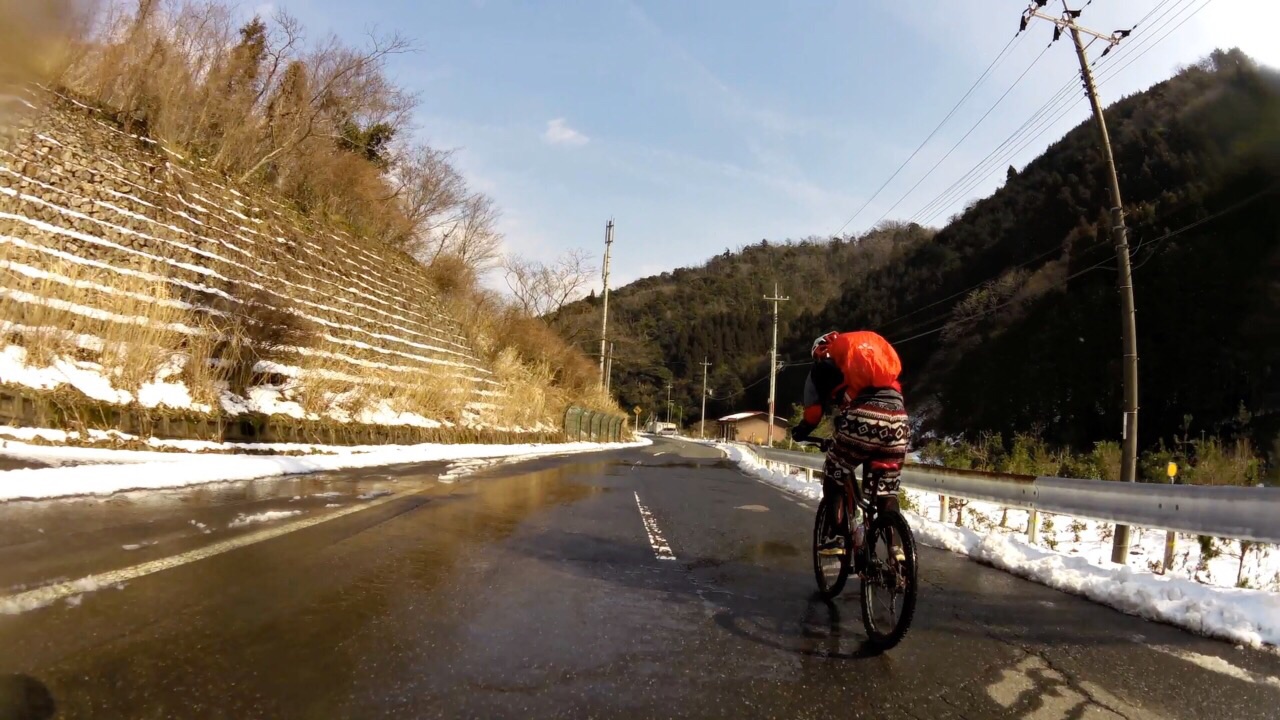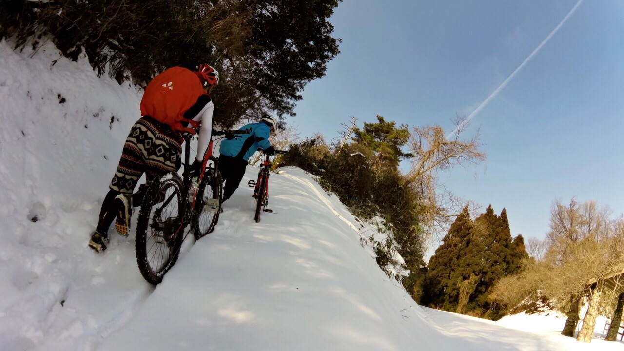 2015/02/11 Category : MTB 雪山で遊ぼうの会 今日は予定通り雪山ライド。ファミマに集まったメンツは左から先生?、ひしいさん、自分と〜お見送りのドリさんwお見送りありがとうございます!次回は円護寺に行きましょう( ̄▽ ̄)で、止まっているのも寒いのでスタート千代川の左岸側の土手を走り砂見方面へ。で、また砕石場方面へ。予想通りの積雪( ̄▽ ̄)推定5cm。積雪5cmぐらいが結構続きます。滑るたんびにキャッキャ言って楽しい感じ…ここぐらいまでは…白目……もう乗れまてん(T_T)オッすオッすスノーヨガ?オッすオッすスノーヨガ?を繰り返し高低差約200m分ぐらいは手押しで…真夏並みの汗をかきますた…白目そして今、一番ホットな場所の展望台へ上がる手前に到着。そしてまたまたオッすオッすああこの写真いい…途中無駄にあげつつも〜登頂〜( ̄▽ ̄)ああ〜この場所いい〜飽きまへん◎飛んでいきそう…体も冷えてきたので下ります。今日の先生はとても愉快でいつも以上に楽しませてくれます◎あ、そのバイクはベンさんの…白目展望台を下りてからはダウンヒルを楽しみます。まあ、雪でスピードは出ませんが( ̄▽ ̄)ああ、アスファルト…落ち着きますw雪の押し登りでだいぶ疲れたので当初のルートはやめ高路の方へ向かいます。水跳ねハンパなすフェンダー買おう…あ、ベンさん重装汁染み込ませておきました…白目河原のラーメン屋で飯って〜千代川の土手ではしゃいで〜円通寺坂越えて〜ブキミー越えて〜終了\(^o^)/だっくだくのビッチョビッチョのグッチョグッチョになりましたがかなり面白かったです。皆さんお付き合いありがとうございますた\(^o^)/雪が残っているうちにあと3回ぐらいは雪山ライドへ行きたいデス…白目 [0回]