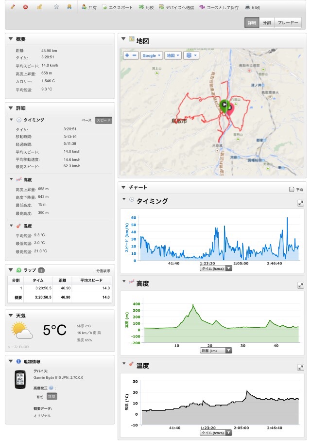 2015/02/07 Category : Road Bike らっすんごれらい 4日、水曜日。夜練。この日の仕事の区間は、十六本松から岩戸。砂浜を…砂浜を…砂浜を…8km歩き…白目サボろうとする僕を師は上手くかわしてサボらしてくれません(T_T)まあ走りだしたら疲れはとんで面白いデスけど。砂丘って、大王で飯って河原城で〆最初、河原城の前に中山ってから行こうとか言ってたけど止めて正解。リバース自爆するとこデスた…白目夜の河原城。夜練にいいかも?何時までかは知らないが早く来たらライトアップされてるし、ライト消えててもさほど怖くない(^ν^)5日、木曜日。ジョギング。コースは砂見方面。往復12km。ペースが遅すぎるが仕方ない。ミート君が重くて、揺れて、まだ走れまてん…白目というかこのログのタイトル…犬に追われる…えっ?えっ?なんて?……重装備者、6月で35才!真剣に犬に追われましたーーー!!!白目…ぜえぜえハアハア( ;´Д`)怪しい人間発見!噛んだれ!(犬)ワンワンワンワンワンワーーーーんε=ε=ε=ε=ε=ε=┌(; ̄◇ ̄)┘ワンワンワンワンワンワンワーーーーんε=ε=ε=ε=ε=ε=┌(; ̄◇ ̄)┘いかんリアルガチで噛まれそう…唸って威嚇…全くもって効果ゼロ(T_T)脅す為に蹴りを食らわす格好…ビビり気味で…弱々しく効果ゼロ(T_T)しかも近所の人見てた…すっげー恥ずかすーーーーーーーーざんす( ;´Д`)犬はまだ追ってきます…小石を拾い、投げつける!!!当たらなくても効果有り!!!でまた逃げる。犬ー追う。今度は両手にいっぱいの砂利を掴む。それにビビったか、テリトリー外に出たか犬はもう後ろにはいなかった。勝利!!!えっ?えっ?なんて?あ〜助かった〜〜〜〜ε-(´∀`; )怖かった〜〜〜〜( ;´Д`)もう毎日が刺激的…痩せたらリベンジに行こ!今度は走りでぶっちぎる…砂利を持ちながら…ちなみに首輪してます…白目6日、金曜日。サイクリング。コースは飲み会で話してた↓ツールド鳥取。改め山嵐。150kmの3000上げ…の〜三分の一を走ってみました。平日なのに休み=ε-(´∀`; )出ようと思ったら雨×二回…萎えます。萎えます。萎えます。若干降ってたが、もういいわーーい的なノリでスタート。まずは前日のジョギングで走った砂見方面の谷へ〜砕石場方面へ向かいます。ちなみに路面は落ち葉、落石、泥、とオススメ出来ません。勾配は結構キツイです。まあ自分の物差しなので…白目雪の季節でも走れるように標高はそんなに上げずを考慮したコースデスが積雪が…雪が見えたら普通は引き返すだろうけど、今日はウエットでドロドロなので。というか雪道をビビりながら楽しんだり…哀愁漂う後ろ姿えっ?えっ?なんて?…衣笹山の展望台に上がります。初デス。というかこの道通ったの二回目ぐらい。画像では全く伝わりませんがとてもいい展望台です。三角点もあります。自転車で隠れて見えませんが。この場所…楽しいぞ…ダメだ…我慢できん…ノセタ( ̄▽ ̄)ここほんといいデス。しかし展望台までは階段デス。今なら雪なのでクリート部が雪でてんこ盛りになり下駄みたいになるデス。…え〜それではいつもの…(・Д・)ノhttp://youtu.be/vEtNdV9AYbY結構レアな道を通ってて、面白いかも?ロードで悪路は控えますデス。悪路専用通勤マシーン出でよ!!! [0回]