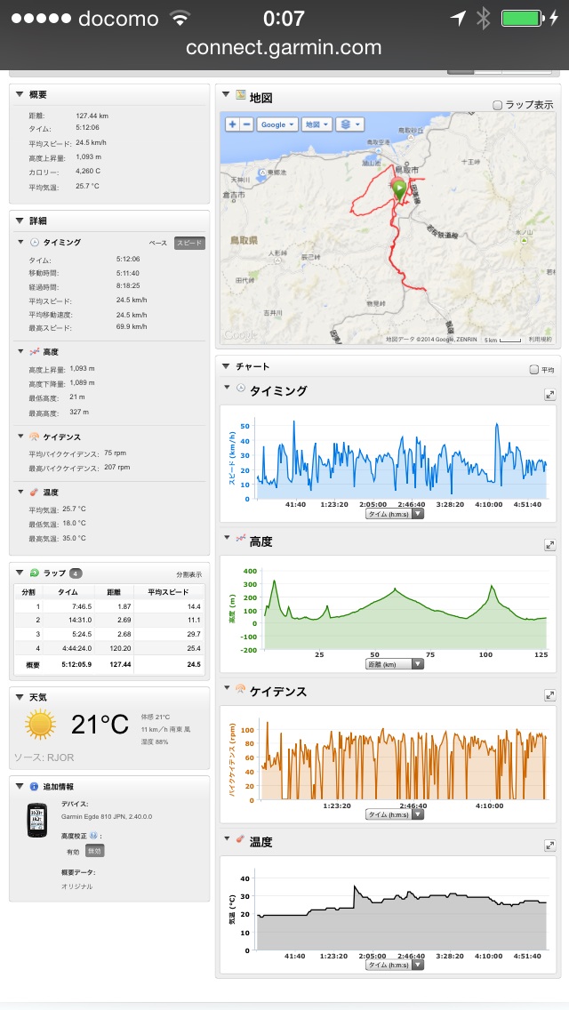 2014/08/14 Category : Road Bike マルコです門 久々の門練!いつも当日にLINEで誘われるパターンだったけど、初めて前日から予定決める。しかし先生のノリはフワフワ気味( ;´Д`)他人と走る機会がない自分はこの門練を楽しみにしとるんですけど…( ̄◇ ̄;)7:30待ち合わせの予定で6:00には家を出る目指すはやはり空山ーー!ラップボタンを押してスタート!前日が15分30で今回は…14:32!!!やりました(^ν^)最後の激坂をいつもより回せた気がします◎目標は11:30なんでまだまだなんですけどね…勢い的にもう一回いきたかったけど今日は山の予定なんで無理はせず400上げぐらいで万葉を目指す7:15万葉着!ブログ確認…8:00になりそうデス!先生ーーー!( ̄◇ ̄;)と、ローディーが一人到着したっぽい車通勤の時、何回かすれ違ったマルコ先生!!!初めまして!!!そして続々とローディーが集まり黒スパさん、F肉さん、ふくさん門先生も到着し出発ーーー!このパターンは必ずピースを…あ、マルコ先生まで…F肉さんと別れ三人で佐治を目指します。待って下さい( ;´Д`)速いっす…用ヶ瀬のポプラでやっと休憩〜「そのボディで赤コーラはやめなさい」…ここでマルコ先生とはお別れJ君として僕を鍛えて下さい!またお願いします!でいつも?のルート見直し会議を終え三朝却下(^ν^)恋山形駅行って板井原のカフェを目指すことに先生は今日はパナモリこのドツボ感にジェラシーハンカチを噛み締めるハンカチローディー……到着〜エリオタンこのポーズは?やはりこっちが良い◎板井原のカフェの営業を確認しようとネットを開くが閉店しました…( ;´Д`)コンビニでアイスを先生どう?イラネ(・ω・)ノ用ヶ瀬の喫茶店を目指すこっちにはねえよ!MAPみたけどなかなか辺鄙なとこに位置づけ…村の中をウロウロしまくり思いっきり分かりやすい場所だったり…喫茶店のにおいが良い◎あ、先生のしか撮ってないわ…満腹後の53号微下りは…気持ち良過ぎて寝かけたzzz神戸の谷から松上の谷へ抜けクールダウン気持ち良さそう!!!自分、実は…足が攣りそうで靴を脱ぐ動作をしたくなかったんです(。-_-。)結局、無茶苦茶アタックで攣ったんすけど(。-_-。)先生またお願いしますねー!次回までにまた特訓しときます(^ν^)そして帰ってガーミンを充電しようとすると…差し込み口が汗で錆びて充電できません(T ^ T)修理に出すとしても出している間どうしよう(; ̄O ̄)明日、100均でストップウオッチ買うか…今月、1000キロ目指そうと思ったのに手動アップか…めんど( ;´Д`)やめた!空山TTと中山TTを繰り返そう首からストップウオッチ下げてね… [1回]