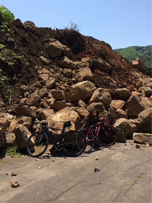 2014/05/18 Category : Road Bike 初めてのツーリング ヘルメットを購入してから人と走ってみたく、うずうずしている私いつもブログを拝読させてもらっている方で明日誰か一緒にいきませんかー?的な告知が…この記事を見た瞬間お願いします!!!とコメントしたかったのだが小心者の私はコメントできず…翌日、なんとかコメントをしてみる。私は、佐治ー三朝ー小鹿渓を考えています。あなたはどこを走りますか?参考にさせてください。と参考にといいながら、最初から同じルートを走る気満々な私。約、一時間半後に返事のコメントが今はマーブルキッズで国府から兵庫の方に抜けようかとルート決定!そして返事を私もそっちに向かいます。黄色のraphaでメタボで真っ黒な自転車です。とこのコメント激しく後悔…自分の格好告げて、追いつく気か…このメタボ野郎…まあ深く考えずに向かう事に前方、マーブルキッズ!チャリ発見!!!ママチャリ…殿ダム通過!それっぽい人みあたらず…途中、岩美方面と河合谷高原への分岐が…困った…とりあえず何かコメントがないか携帯をつつくと河合谷高原経由で向かいます!との事。初めて来たけど見晴らしの良さに感動今まで、高山最高!なんて思ってましたが河合谷高原最高!!!へというか追いつける気配がありません…いつもブログに動物が出てくるから牛でもいたらパシャパシャやられているじゃないか…牛いねえっす…出会って挨拶したらもう下ろうと必死に回してみる!!!!前方に自転車マンが!!!赤のデローザ!!!やりました!追い付けましたー!!!始めまして門さん!重装備者です!で立ちゴケ…いやーテンション上がりました。ちょっと話して下る予定だったのにそれを忘れるぐらい人と走る事の楽しさが十分体感できました!給水ーそして、ゲートが半分くらい開いた道を通ることに…何カ所か担がないといけない場面もまあなんとか順調に下っていき…!!!…強烈な土砂崩れが…普通は引き返しますよね…400以上は下りました。昼は過ぎてます。私は限界です。ということでめちゃくちゃ歩きにくく、クリートに土がつまりまくったが無事に越えるすんません門さんm(_ _)mお一人だったら引き返されてたでしょう( ;´Д`)この二人で写っている写真は現像させてもらいまーす!とても気に入りました◎集落まで下ると食事処が!二人とも牛丼。但馬牛。ああー昭和な雰囲気がとてもいい美味しかったです!ご馳走様でした。棚田を眺めたり日本海の荒波に揉まれたりしましたが無事帰宅。門さんいい思い出になりました!そして、ずっと前を走っていただきありがとうございます。なかなか文章で気持ちを表すのは難しいですがとてもいい気分です。 [0回]
