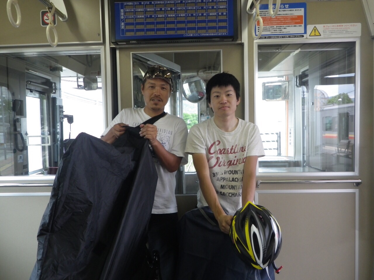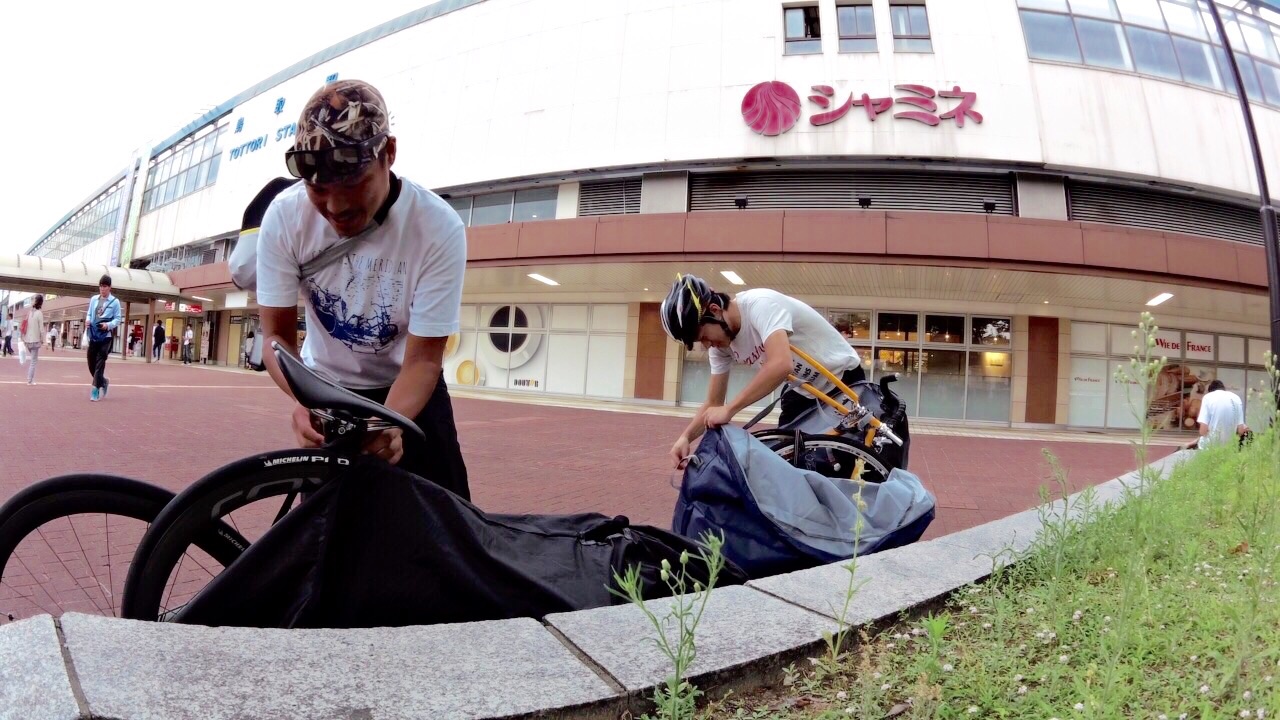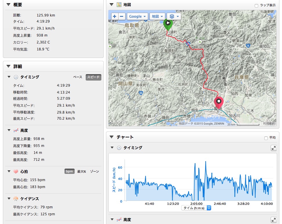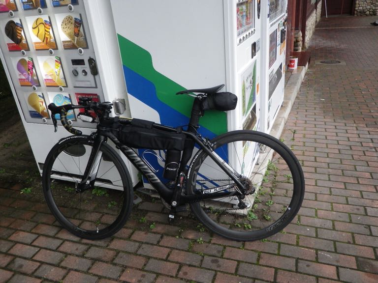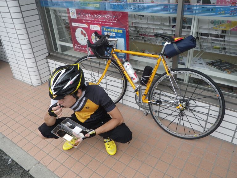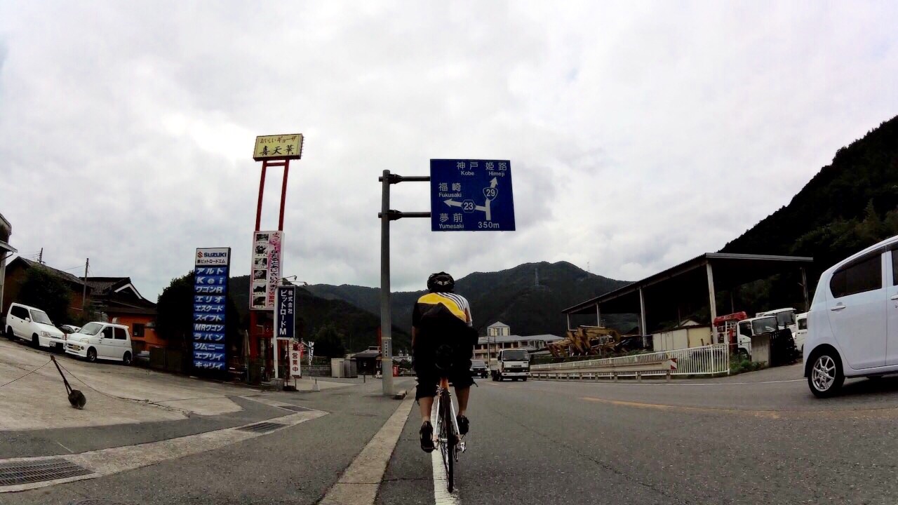 2015/06/21 Category : Road Bike 源太橋TTから始まる輪行の旅 金曜日にブログにて輪行同行者を募ってみたが…反応なし…輪行マスターのグリさんクワさんの書き込みを待っていたのだが…白目と、いうことでSなお人と行ってきました。姫路城まで\(^o^)/フレームバッグにはTシャツ、ショートパンツ、ブリーフ、モバイルバッテリーを詰め込んで。ちなみにボトルは気合い入れないと取れません…輪行袋はサドルにくくりつけ、フェンダー代わり。とりあえず五時半に河原ポプラ待ち合わせなのだが…源太橋TTを一発してから向かおうと国道53号線を北上。すると国安辺りでSなお人にすれ違いそのまま源太橋へ…カーブしてスタートなんで勢いないままスタート!!!って朝一でアップもせずなにやってんだか…今日は旅ってつもりだったので千切り愛は無しでローテしながらノンビリと\(^o^)/というか路面ビショビショで後ろつくものならガンガン水しぶきが飛んできます。後ろつけれません…Sなお人も後ろに輪行袋をくくりつけフェンダー代わりにしているが、自分のジャージの背中は守れても、真後ろには飛んできます…ルートは国道29号線に出るまではウラタンピであ、ここではちょいちょいバトったような…しかし、こないだのマルコさんのやつの二の舞になるのは嫌なので控えめに…ウラタンピ終わる頃…既に汗だく…天気予報は北風だったのに向かい風気味だし…なんだかもう満足…ウラタンピも終わり、国道29号線を走ります。「もうよくないっすか?」…Sなお人が…「もういいと思います。」路面もグチョグチョ、空も薄暗く晴れそうな気配は一切無し…しかしなんだかんだ言っても二人は止まらない。戸倉峠は話をしながらノンビリと。というか自分は頑張ってもノンビリ…トンネルを越え、後は下りだーー\(^o^)/と、喜ぶも向かい風のおかげでスピードが乗らない…全然面白くない…しかし、嬉しい事が…兵庫側は道路が乾いている!!!Sなお人も嬉しそう\(^o^)/波賀の道の駅で休憩。旅仕様ベンこ…う〜ん…旅仕様チネこ…いいのう…やっぱりクロモリ欲しい…カーボンはカーボンでいい◎錆びないから…これどこの写真だ…おぉ…とてもスポーティ…国道をずっと行くのはしんどいので県道の通行量が少ない方で。ファミマで休憩していると…集団のチャリ族が…Sなお人の睨みが効いたようだ…アップダウンのある道で離されます…都市部に近づくにつれ交通量も増え…自転車もいたりでフラストレーション溜まります…と、いう事で…住宅街を走ります…ででで…到着しマンタ\(^o^)/写真お願いするが…城写ってませんよ…ほぼ姫路城見ずにお昼を食べに…隣のシラサギサイクルは目的地の一つ。まあ正午オープンでまだ時間もあったので開いてません。美味かったぞ…また寄らせてもらおう…食べ終わり、隣を覗くと開店してみたいなので入ってみる。「たのもうーーー!!!」…なかなかいいお店であった…また寄らせてもらおう…あ、ここで帰りのヘルメット収納のためにサコッシュ買いマンタ\(^o^)/なんか大阪を思い出すなあ…西成で凌ぎあってた頃を…銭湯で汗を流し…姫路駅に着き、さあ輪行の開始です。まずは輪行袋におさめるところから…この動画が過去最高に面白すぎる…携帯ではアノテーションが表示されないかもしれないのでぜひ閲覧はPCでお願いします。ぜひ閲覧はPCでお願いします。ぜひ閲覧はPCでお願いします。ぜひ閲覧はPCでお願いします。ぜひ閲覧はPCでお願いします。ぜひ閲覧はPCでお願いします。Sなお人の人気確実に上がります。佐用で乾杯を\(^o^)/で、乗り遅れる…美味かったぞ…また寄らせてもらおう…ってここまで自転車来て帰り輪行というちょい輪行いいかも(^ν^)どうですか???買ったサコッシュ。とても便利。終了〜\(^o^)/何だろう…とても楽しかったぞ…またやりたいぞ…Sなお人ありがとうございマンタ(^ν^) [0回]
