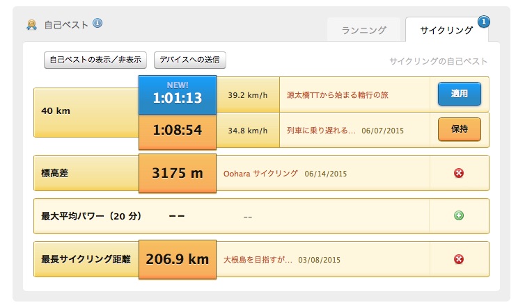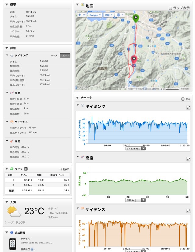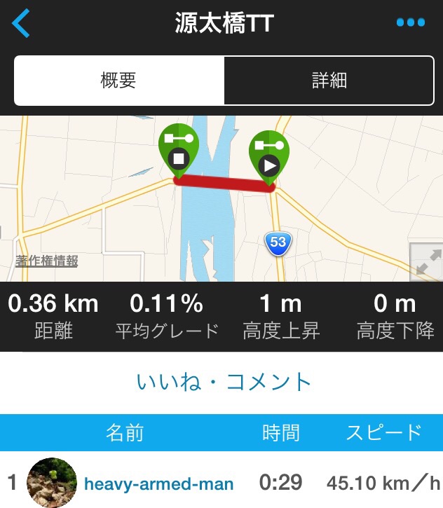 2015/07/10 Category : Road Bike 夏の始まりのハーモニー 最近の朝の通勤ルート小倉から鷹狩に抜けてのマヂトンネル。このコースがマヂ気持ちいい…岩坪を遥かに上回る…途中15%の登りが出てくるけど、風車のような苦しさがなく、割と気持ち良く登れる。朝はあまり頑張りたくない…ある程度走らないと気分がのってこないのです…このコースは最高だ。星二つつけよう…今朝は久しぶりに門道場の集い。岩坪がツボコース…時間がギリなので今日は松上のほうへ下って。先生、S兄者ありがとうございマンタ。いつもノリが悪くてすみません\(^o^)/さて帰宅ルートは…グルグル…家のすぐ裏を走っているが、なかなか帰らないという…更新しマンタ\(^o^)/やっとフラット40で35km/hでマンタ!さてお次はフラット40の40km/h…目標は高く…ゴクリ… [0回]