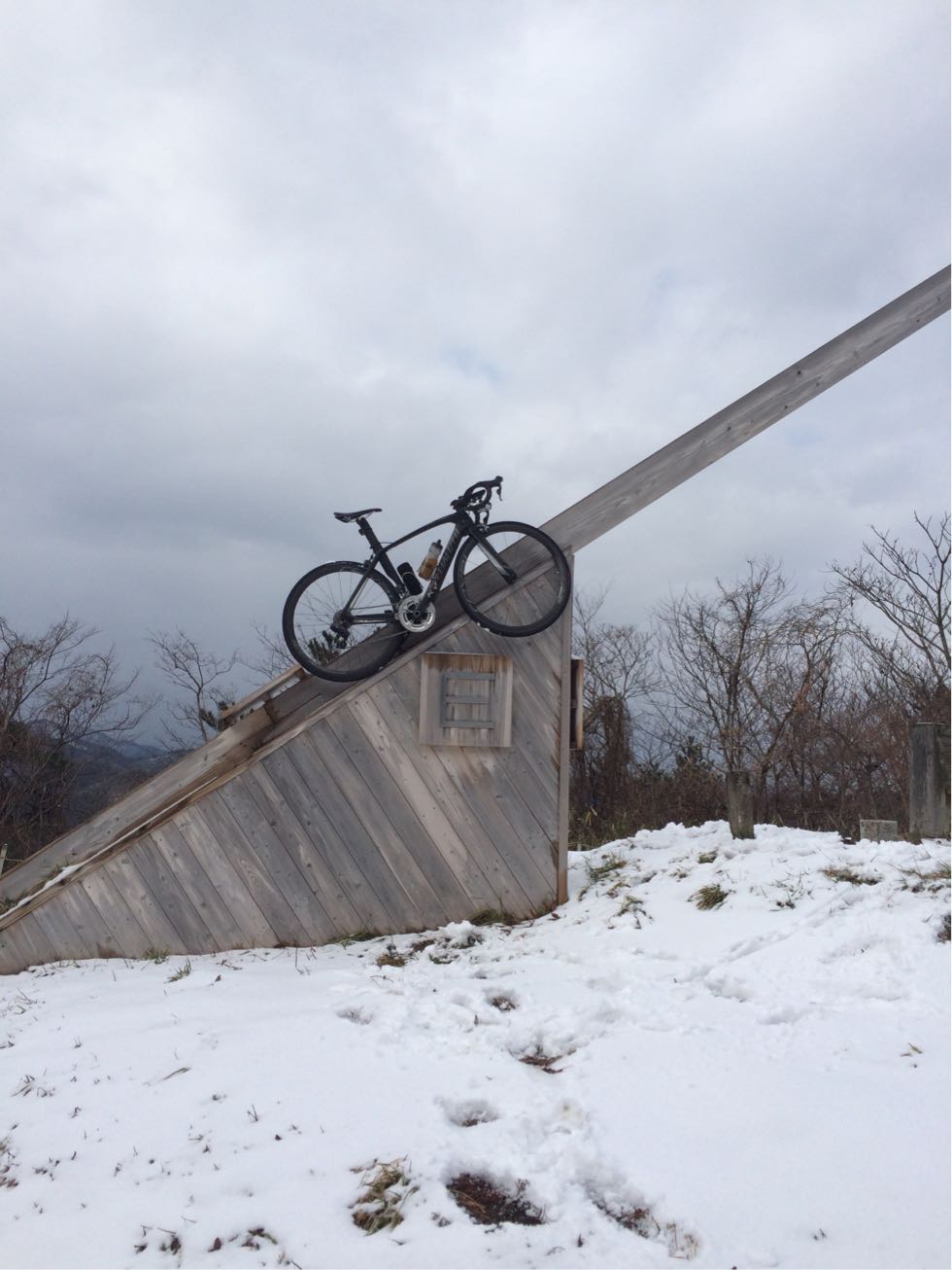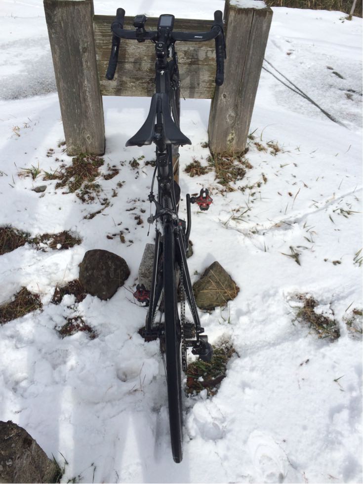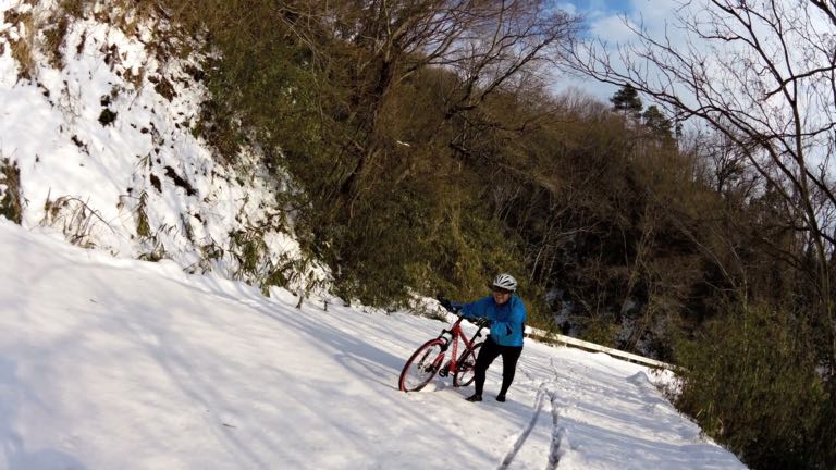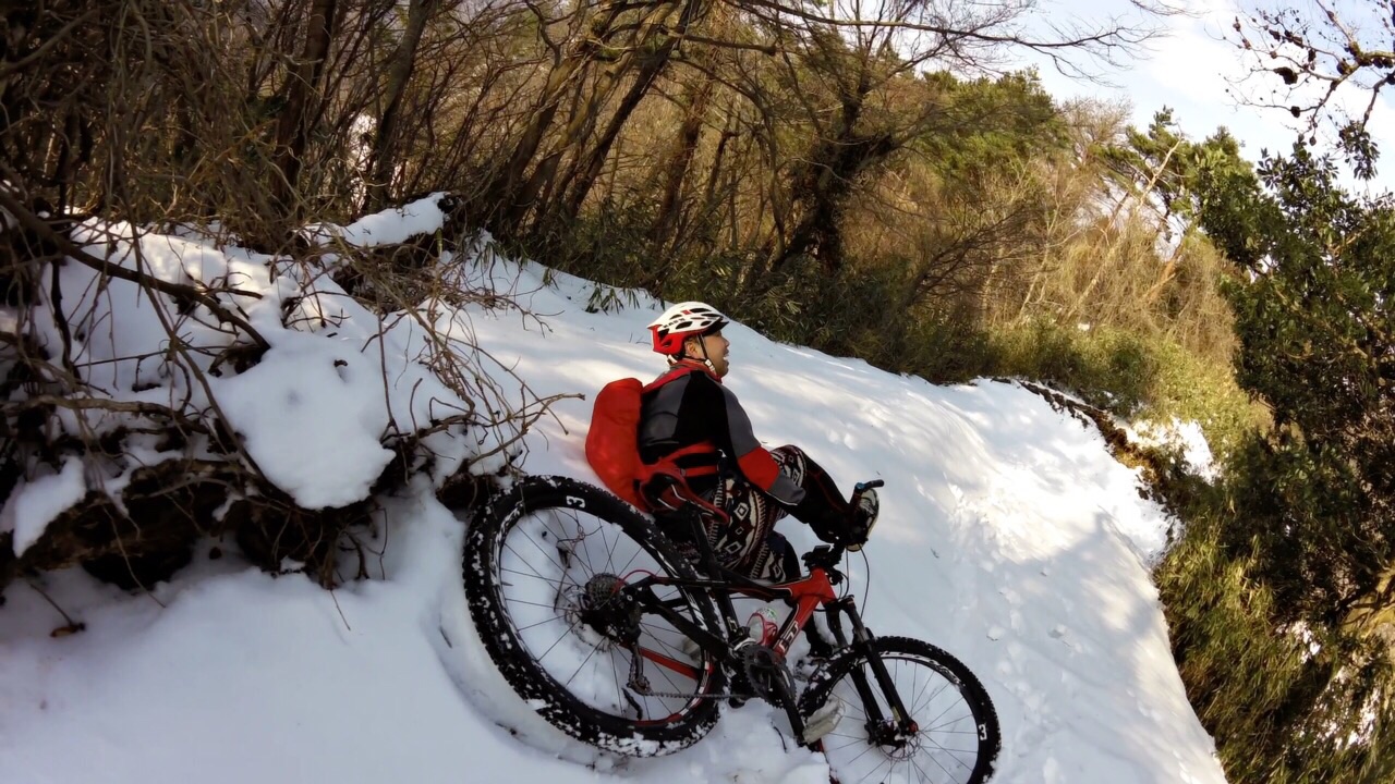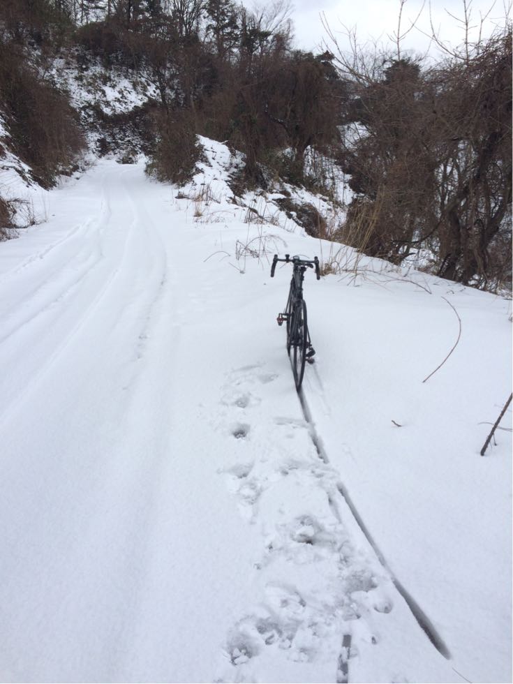 2015/02/11 Category : MTB 雪山で遊ぼうの会 今日は予定通り雪山ライド。ファミマに集まったメンツは左から先生?、ひしいさん、自分と〜お見送りのドリさんwお見送りありがとうございます!次回は円護寺に行きましょう( ̄▽ ̄)で、止まっているのも寒いのでスタート千代川の左岸側の土手を走り砂見方面へ。で、また砕石場方面へ。予想通りの積雪( ̄▽ ̄)推定5cm。積雪5cmぐらいが結構続きます。滑るたんびにキャッキャ言って楽しい感じ…ここぐらいまでは…白目……もう乗れまてん(T_T)オッすオッすスノーヨガ?オッすオッすスノーヨガ?を繰り返し高低差約200m分ぐらいは手押しで…真夏並みの汗をかきますた…白目そして今、一番ホットな場所の展望台へ上がる手前に到着。そしてまたまたオッすオッすああこの写真いい…途中無駄にあげつつも〜登頂〜( ̄▽ ̄)ああ〜この場所いい〜飽きまへん◎飛んでいきそう…体も冷えてきたので下ります。今日の先生はとても愉快でいつも以上に楽しませてくれます◎あ、そのバイクはベンさんの…白目展望台を下りてからはダウンヒルを楽しみます。まあ、雪でスピードは出ませんが( ̄▽ ̄)ああ、アスファルト…落ち着きますw雪の押し登りでだいぶ疲れたので当初のルートはやめ高路の方へ向かいます。水跳ねハンパなすフェンダー買おう…あ、ベンさん重装汁染み込ませておきました…白目河原のラーメン屋で飯って〜千代川の土手ではしゃいで〜円通寺坂越えて〜ブキミー越えて〜終了\(^o^)/だっくだくのビッチョビッチョのグッチョグッチョになりましたがかなり面白かったです。皆さんお付き合いありがとうございますた\(^o^)/雪が残っているうちにあと3回ぐらいは雪山ライドへ行きたいデス…白目 [0回]