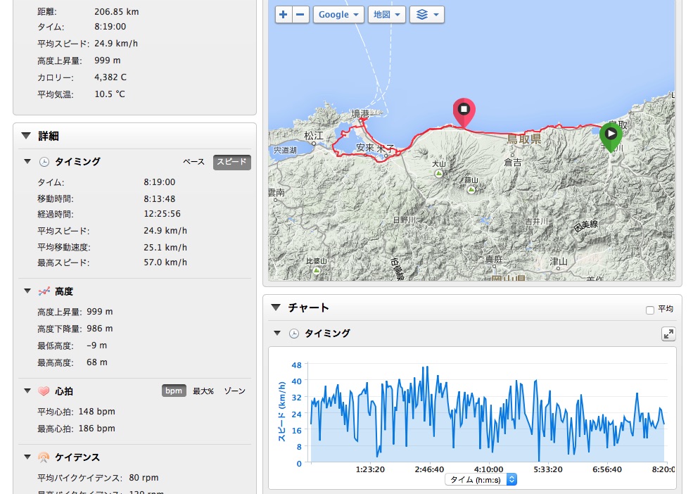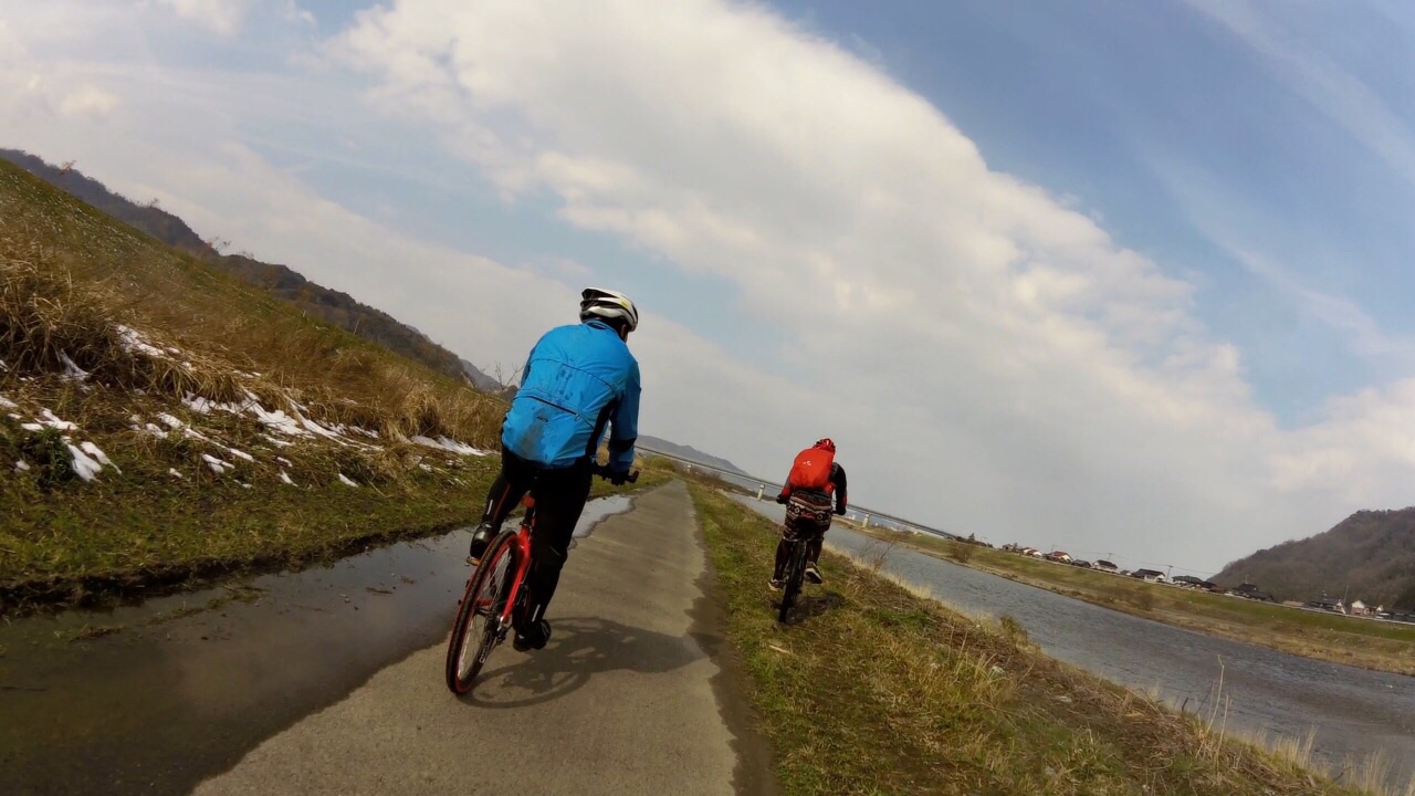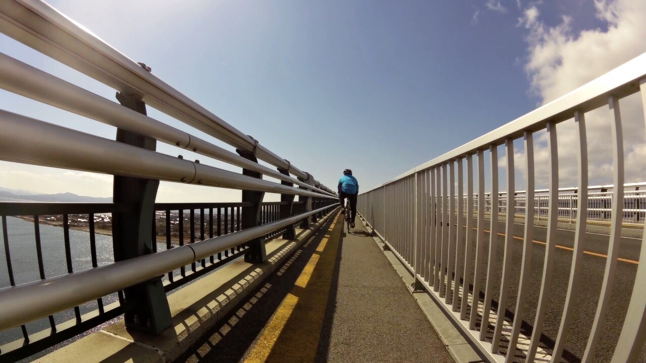 2015/03/09 Category : Road Bike One for all all for one 本来なら8日(日)は、子守りの日であった… 子守りの日であった… 子守りの日であった… … そして前日の7日(土)はフラット40を100までやり続ける予定であった… フラット100… フラット100… しかし7日(土)があいにくの雨で結局乗れずじまい… 今月の日曜は全て埋まっているし、これは嫁の実家の両親に頼んででも8日(日)は乗ってやろうと意気込む。 ちなみに8日(日)は嫁はバレーの試合… まずは無理を承知で自分の両親に頼むと あっさりとOK… ということで急遽フラット200に 目的地は大根島. 往復200どころか250はあります… 自分の最長記録は、温泉ライダー前にやった出雲大社(片道)までの183km この時、足は限界だった… それをはるかにオーバーする250… しかしなんとなくいけそうなきがしたので…ノリで… 今回のメンバーはヒシイさんとS君 ヒシイさんには目的地、おおよその走行距離をつけず… こういった場合、自分ならまず参加しないな 怪しさ全開スギル… 二人とも急遽前日に誘ったのにもかかわらず快く参加!さすがデス!見習わなくては… そして日曜朝…路面はウエット… 小雨決行予定なのでウエット程度は晴れと変わらない!意味不明 6:30に某ポプラで待ち合わせ. S君の姿はあるがヒシイさんの姿が… どうやら待ち合わせ時間がうまく伝わらなかったようだ. ということでワープしてもらい途中合流ということで一件落着… これは…策略か…真相は謎に包まれたままだ. S君には、 「今日は片道100Km練」 と伝えてあったので最初からガンガンいきます いつもあまり人の後ろにピタリとついたりしない自分も 今日はつかないとあとでデスだと思っていたので… これは意地でも!!! といいつつ離れ気味… なんか後ろにピタリって怖いんすね… 路面あまり見えないし、急な事があった時の対応がとれるかどうか… そんなこんなでほぼS君牽きでヒシイさんと合流地点へ 三人トレインになり、S君は相変わらず前で、次はヒシイさん、で自分 人がついている姿をマジマジ見るが… ヒシイさんうまい◎ 一定の距離を保ち、後ろで見ててすごく安定感がある… 自分が人の後ろついたら、ついたり離れたり…独り言言ったり… 変でいてなんか怪しい… パン屋の時クマさんにも言われたが、これほんと上手くなりたいす. 追い風もあり巡航速度は速め. 33km/hを下回る事はなかったような気がする. 去年は渡った境水道大橋 今回はやめときます. 自転車通行可かどうかははっきりしていません.お調べ下さい. というか当初の予定ではここらまで来る予定はなかった… しげる…しげる行くか… という会話がチラホラ… ということで水木しげるロード到着~ 子泣きじじいを発見したり 境港に来てるのにビーフカレーを食べる人がいたり 子供への土産をガチャガチャですまそうとする人がいたり なんだかんだ楽しみ、結果寄って正解という◎ ちなみに3月8日は水木しげる記念館の開館記念日らしく観光客もわりと多めでした. と普段を知らないくせに言っておきます…白目 満腹になり、ゆっくりと大根島を目指します. 鳥取方面から大根島への最短ルートで渡る橋といえば べた踏み坂で有名な江島大橋. 景色ばかり見ててサイコンは見なかったが勾配は鳥取県側は5.1% 島根県側は6.1%あるそうです. なぜこのような勾配があるかというと、まあ察しの通り船舶通航のためらしいです. JPEGでは乗っておるように加工してありますが この橋は自転車を降りて通行して下さい. そして既に大根島内にいるのに 「大根島はまだか!大根島はまだか!」 とぶつぶつ言う黒い人がいたり… で大根島へ到着.(既に島内) そもそもなぜ大根島を目的地にしたのかというと…なんとなくだったり… で、とりあえず小腹が空いたのでスイーツをという事でカフェ探し S君は相変わらず爽やかだが、二人は潮まみれ… 二人なら絶対入りませんねーとヒシイさんと意気投合するようなカフェへ このお店、調べると… 営業している時は青い旗があがっているらしい. 幸せの黄色いハンカチかーーーと 突っ込みつつ本当に青い旗があがっていたり 黒い人以外は、幸せの黄色いハンカチ=高倉健 黒い人は、黄色いハンカチ=ビートたけし と話が合わなかったり… 皆アイスコーヒーとケーキを頼み おしゃれな店なのにゲラゲラしたり… 寄ってよかった◎ と予定の時間を大幅にオーバー… にもかかわらず走ればまたまた小腹が空き安来のマックへ… 中高生の溜まり場へピタピタ○ッコりショッカー衣装で ハイヒールを履いているかのようにカツカツいわせて歩くのは正に … 拷問ダッタ… … あの眼差しにだいぶ精神を削られました… もう走る気をなくした黒い人をなだめつつ帰路へ 逆風と戦いながらも色々なリミットがせまり 暗闇での走行、体力、ライトの残量などを考慮した結果 ポート赤碕へ黒嫁に来てもらうことに… 嫁さんすみません… 久々にロードでのロングだったがとても面白かった. 遠い場所でも楽にいけるのはやはりロードの醍醐
