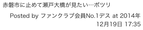 2015/01/18 Category : Road Bike プロジェクトJ完? えーと…動画が先行しましたが…ここらは先生のブログに出てます、おばちゃんの店です(^ν^)登りでは毎回おいてけぼり…白目念のため地元ディーに道を聞き、展望台へかつぎ〜の〜千切られ〜の〜で〜トウチャコ(^ν^)ここに登る手前から瀬戸大橋は眺めていたのだが、やっぱ展望台となると景色が違う。瀬戸大橋を眺めながら、中島みゆきの音楽が…プロジェクトX見てからくれば良かったε-(´∀`; )黒部行く時は予習して誰も聞かないウンチクを 白目あ、三人の集合写真はカップル?夫婦の方に撮ってもらったのですが…彼女?奥さん?に「ポーズは普通なんデスね…(ツマラナイ)」と…心の声出てマスヨーーーーー!あ、ありがとうございましたf^_^;スペシャまみれ 白目前半の部終了デーーース後半のコース↓http://latlonglab.yahoo.co.jp/route/watch?id=414f15492cb1cb2b628f5a3551f443e9等間隔で観光地に寄って気分をリフレッシュしてもらおうと。あ、途中にもいい撮影スポットがありました。児島ジーンズストリートへいい雰囲気が出ている通りです。そして定番の〜この画が見たかったんです。児島といえばこれですよね?ここで昼にします。ごはんもお願いしようかと思ったが我慢、我慢ε-(´∀`; )ごちそう様でした◎次またこのコース走ったら寄らさしてもらいます\(^o^)/児島には風の道というのがありジモディーに聞きながら気楽に走れますが、ストップ&ゴーの繰り返しが……先生のお腹を苦しめたようデス 白目そしてここから先の目的地は美観地区!!!!続きはまた!!!!……えーメイン通りを外して川沿いの道を走ったりで〜美観地区トウチャコーーlあれ自転車が四台…グリオさんと合流でーーース(^ν^)知らぬ街で待ち合わせて出会う。いいもんです。自転車でってのがまたいい。S君は美観地区初めらしくて、この観光地、景観にご満足。次は彼女とのサイクリングでくるように勧めときました。このコースで…白目あ〜この先生かわいいな〜 白目美観地区でいちゃいちゃも程々にして、次の目的地は岡山市中心部。東にいけばいいのだが…あ、S君ログ画像借ります。810のナビがバグり、だいぶ大回り 白目皆さんすみませんでした。まあ皆さん走るの好きな人ばかりなので、大回りは大歓迎???ってこの時既に120〜130kmは走ってたか…もう既に陽は暮れてたし 白目そんなこんなで岡山市〜クルールグリオさんがいなかったらもうここは寄らずでした。ありがとうございます。自分へのお土産に…え、今のチャリ ベンジにつけますけど?…え〜この店で見てからエルボーパッチのジャージがずっと気になって…来月買いに行きます。誰かクルールを目指すポタいきません?汗だくor潮まみれで 白目この後、45の横の店に寄ったり〜岡山夜クルーズを楽しみ山陽ふれあい公園へ到着〜皆さんお疲れ様でしたーー!!!いい思い出が出来ました。何ヶ月、何年か後またこの時の思い出を思い起こすためにブログを書く。って文少ないデスけど…やっぱり動画だけではちょっと難しいですよね。それでは〜 9:20〜 この長い長い下り坂を〜君を…17:30〜 児島ジーンズストリート着。25:30〜 地元ローディーに挨拶。27:30〜 地元ローディーにバレずに後ろついてたつもりが思いっきり手信号…その後、風の道。1:00:20〜 この長い長い下り坂を〜21:17:40〜 美観地区トウチャコhttp://youtu.be/fG7Nu_wljLY [0回]PR
