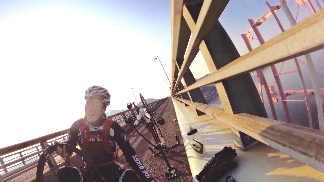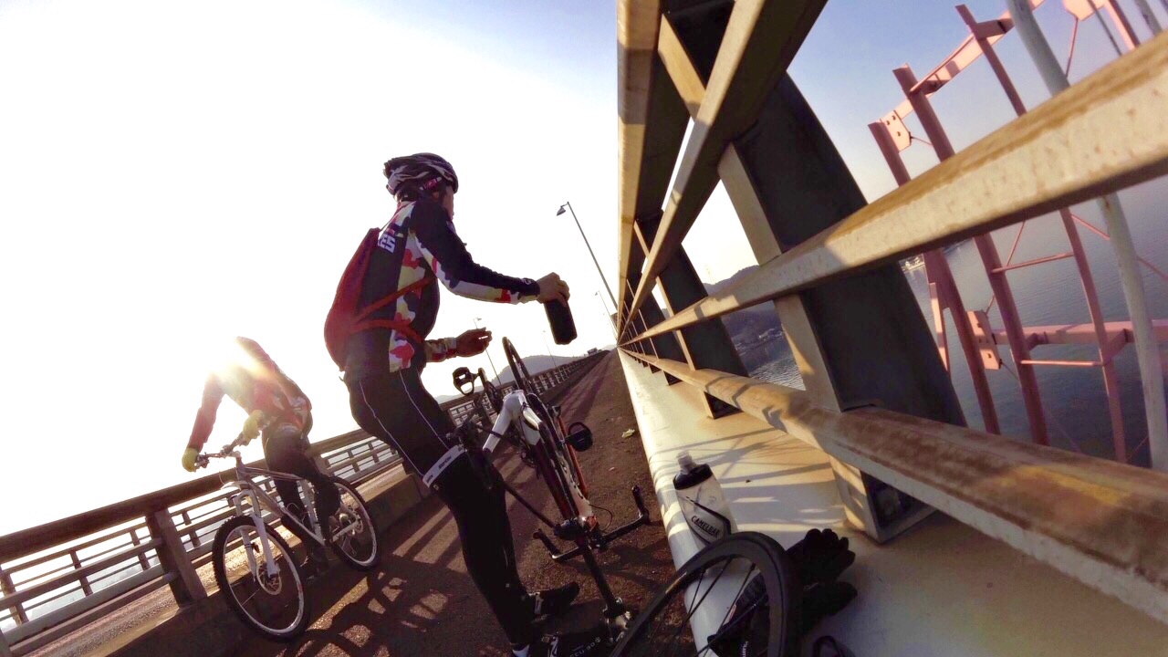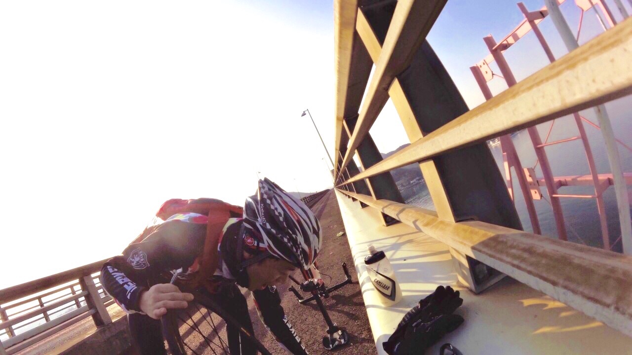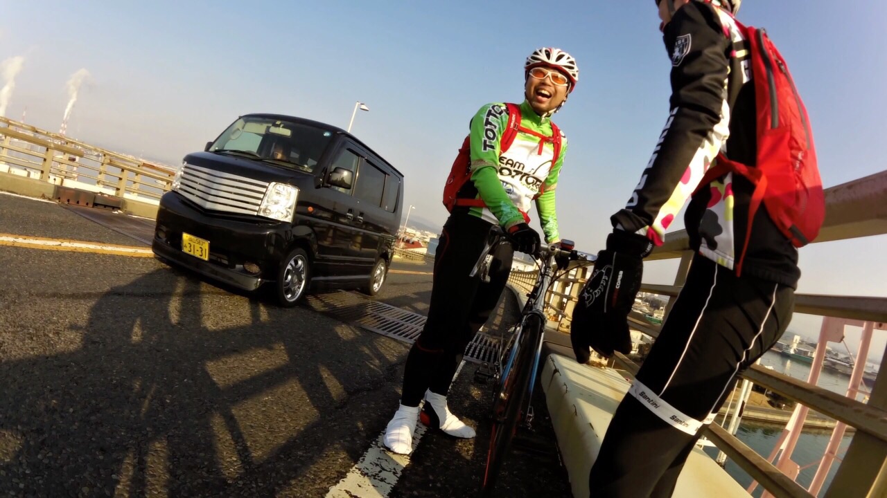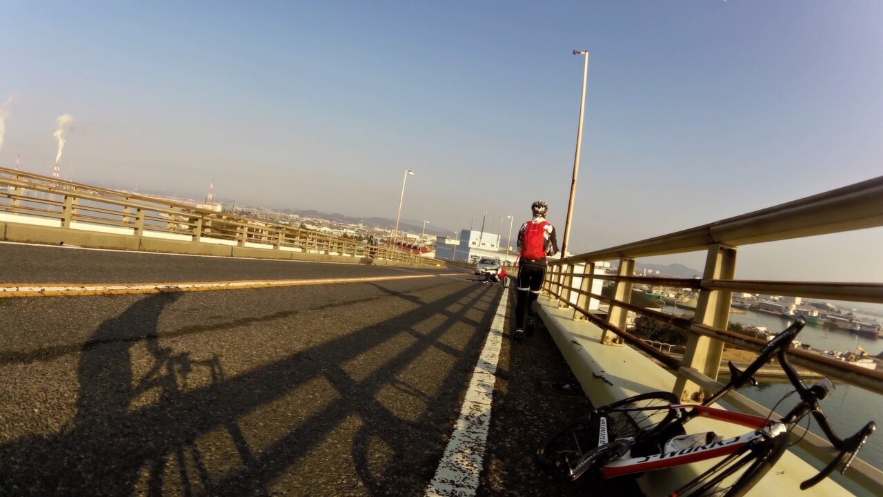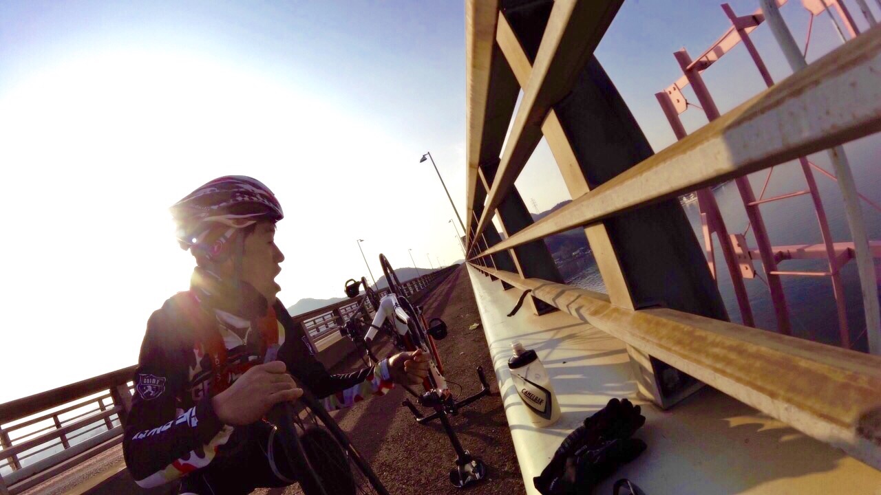 2015/01/07 Category : Road Bike プロジェクト J 1 プロジェクト Jこの計画を立て始めたのが…昨年の12月中旬ぐらい。うん!浅いε-(´∀`; )…まず岡山ポタを計画するドリさんのとこへ偽名であげてみる。ドリさんにはバレてない様子だが先生には全てお見通し…で、もちろん参加してもらえると◎しかし、そこでちょっと問題が起こった!瀬戸大橋って言っているのに、しまなみというキーワードが会話の中に…これはもう「右」ってやつを「左」って言わせるようなもんだ…しまなみは遠いのでまたきっちり計画してからでお願いします 白目そしてもう一人のお方は〜ハマグリ…小栗しゅん似のSくん!朝練でたまに会ったり、温泉ライダーですぐ近くに陣取っていた事もある。なぜS君を誘ったというと〜長くなるので想像にお任せしますwで、で瀬戸大橋案は見事にスルーされ…この時スルーされて本当良かった。え〜パソコン二台体制でコースを考えます。マックでストリートビュー見ながらWindowsでラボる。マックはマウスは無しで怪しい?指使いで操作しているんだけども、たまにWindows見ながらマックで指動かしたり、マック見ながらマウス動かしてみたりとバグりすぎ 白目え〜交通量、路面、外側線より外側の幅、チャンネーへの出会い率…を考慮しながら〜考えた前半のルートがこれ↓http://latlonglab.yahoo.co.jp/route/watch?id=5eeee3742fc6b27d55d0125637b8e35b正月休みこれでほぼ潰れた\(^o^)/最初は湾岸沿いを検討して作成していたのだが距離がかさむので却下しこの案へ。実走で危ない箇所も分かったので次回は湾岸沿いで\(^o^)/あ〜どうしよう話をどこらへんからまた戻そう……百均の座布団が干渉を防ぎます。そしてちょっとこの姿かわゆす(´∀`)サイドバッグを付け旅に行くみたいw5時20分に先生宅へのところを4時50分には着きそうに…楽しい事を考えると我慢出来なくなるやつデス。ああブルーハーツに面白い事を考えてー♪みんなを楽しくさせたいなー♪って歌があったな…脱線のし過ぎで話が進まないとデス 白目デスえー一気に〜喪黒福造ばりに〜ドーーーーーーーーーーーーーーーンって言うわりにはあまりとんでおらずの〜山陽ふれあい公園へ。ここに車を止めスタート!!!Sくんの愛車がSわ〜クスへ…いいな〜いいな〜って感じでワイワイするのじゃなく…何買ってんだ{(-_-)}と若干イビリ気味 白目事前に先生からゴニョゴニョされてたので、ターマックご購入は既知でアルこの日までに、ター ネタ画像をSくんにラインでガンガンぶっこむ!!!うまくかわしているのかリアル気づいてないのか、全く分からない(; ̄O ̄)やはり話が脱線する…そしてコースも脱線する。児島湾大橋手前で橋を渡らず下の道へ…Uターンし橋を渡ります。自分先頭の重装トレイン発車デスアーチ具合がすごい橋デスとなると逃げの部分の継ぎ目も…この後、重装トレインも大脱線で壊滅的ダメージ!!!そのダメージを与えたのがこれだ!!!123この継ぎ目にやられました!!!リアルなやつは後に動画で…先頭→自分→はまらずに上手く通過二番→S君→激しい音とともにパンクケツ→先生→…ほんとすみません…もう今日はもうやめようとオモタ…しかし先生は気にするなって感じのドシーンっぷりやはり先生は偉大です。道場の主です。そして今日の先生は沢庵和尚の実写版!!!ダンディなヒゲが悟り感を出しすぎデス各々が、マシーンチェックやパンク修理をしてリスタート!が、S君またパンクε-(´∀`; )自分は外したチューブをパッチで修理するがうまく出来ず…「S君〜パンク修理失敗したからとりあえずゴムのりでマーキングしといたよ〜」…あなたは犬デスか…そんなこんなでワイワイ、ペチャクチャ、イチャイチャ?しながら作業していたところを一人の自転車マンが通過〜なんと、先生のお知り合いのジャイアンさんでしたーーー!!!始まったばかりなのに宝庫過ぎるwまたまたワイワイ、ペチャクチャ、イチャイチャしてると…S君がいきなり叫ぶ…ワーーーーーー!!!!!!どうした!!!!!動画→静止画切り取りがこれだ!!!123飛んで〜♪飛んで〜♪飛んで〜♪飛んで〜♪回って〜♪回って〜♪回って〜♪落ち〜る〜♪タイヤレバーが飛んで橋の水落としの穴へダイブっす( ̄▽ ̄)穴付近でいじるのはやめましょうwで安全のために今一度再確認。危なそうなとこは一旦止まってでも歩道へ。危なそうなとこは車間距離をあける。ってことを話合いリスタート!橋渡ったローソンにて地元の人かと思い、走りやすい道を聞こうと思ったら…600kmのブルペ?の最中らしいブルペ…?先生にその時聞いたけど忘れたε-(´∀`; )そして朝方、凍結で他の選手がこけまくったと…(; ̄O ̄)なんか壮絶〜( ;´Д`)2へ続くか…動画丸投げか…白目 [0回]
