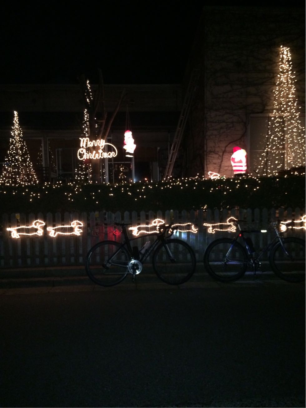 2014/12/08 Category : Road Bike Monday Night Rider この時期になると日が落ちて暗くなる時間も早まり現場も早く終わらざるをえません。今日も一日終わったなーと助手席に座り、携帯を見てみるとLINE が一通。嫁かな?保育園の迎えかな?と、見てみると…門先生!!!「夜ライド逝きましょう!」既読にならないように見て…冷静になってみる。この寒い中を自転車…しかも夜…しかし、断る事などーーーーデス or デス !!!!デスしかないのデス逝きます!逝かさしてつかーーさい!と数時間後に返信…この寒空の中を自転車…って想像していたら逆にテンションが上がってきたりε-(´∀`; )いつものとこで待ち合わせーサンタクロース…今夜のナイトライドは夜飯行ってからってことでー川端の島忠花ーからあげ定食ー一人分でも多いのに先生の分まで奪って食べるという、あってはならぬ行為をしでかしてしまう……さすがに食べ過ぎましたε-(´∀`; )民家?子供の国デス♪とここで雨が降ってきたので帰路ります。100kmは走るまで帰らないと決めていたのに残念デス…まあ冗談デスけど…先生、今夜もお誘いありがとうございました。必死で断ろうとしてた自分がとてもとても…普通だと思います 白目次は満腹にならない程度のやつで行きましょう\(^o^)/意外と寒くなかったので次も気軽に誘って下さいね〜〜また既読になるまで数時間かかるかもしれませんけど( ̄▽ ̄) [0回]