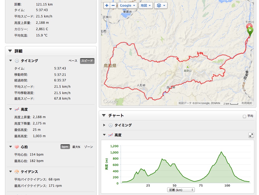2014/05/22 Category : Road Bike 2000上げ 今日はお休み。あ、昨日もか…あ、明日も明後日もか…段取りが上手くいってなく…ということで今日は自転車デー◎昨日、岡山で買ったコインケースを持って。こないだの初ツーリングで、今までお金はジップロックに入れててちょっと、いやだいぶ恥ずかしかったので買いました。今日のコースは、辰巳峠ー三朝ー小鹿渓。『熊』というキーワードが頭から離れず、昨日、ウィリーウィリアムスvs熊藤原喜明vs熊を見てなにか参考にしようとするが余計にビビりますた…だいたい参考ってなんでしょう?…まあ他に走りたいルートは特になくこのルートで向かうことに。53号をずっと走ればいいのに…神馬…鳥取のマチュピチュ以外にも気になる箇所が…またいずれ…アストロパークを抜けて佐治川ダム県境付近久々に登ったけど、前回より楽だったような体重は増えまくったが、禁煙効果のおかげか…恩原を抜けてーーー去年この179号線の下りが最高に気持ち良くて今回も!と思ったら風が…ハンドルもとられぎみでビビる…三朝町まで下る。三朝川いつもなら風呂入って終わりにしたいと思うが今日は足の調子がいい◎こないだは何回つったことやら…お好み焼き屋に入りかけたが補給食で我慢…63キロまでは落としたいので小鹿渓て全然わからないから…遊歩道を下りてみる。こないだの土砂崩れを経験してこれぐらいなら楽勝ー的なノリに…しかし下の岩場は結構すべり後悔…ほんとはもっと景色がいいんですけどアングルが…中津ダムここら辺、熊が出てきそうな雰囲気がプンプンしてずっとビビってました。中津の集落を抜けた辺でこの看板…まあ無視して通り過ぎたんですけど大丈夫でした!!!で高山を下って無事帰宅◎初の2000m越え!( ̄▽ ̄)やりましたー◎珍しく1度も足が攣らずなにか不思議な気分です。熊というキーワードを除けば道もよく上がりたい人にはいいコースだと思います。 [0回]