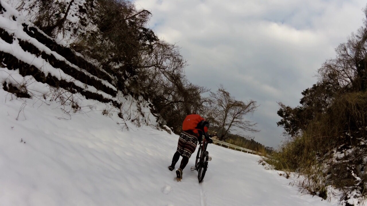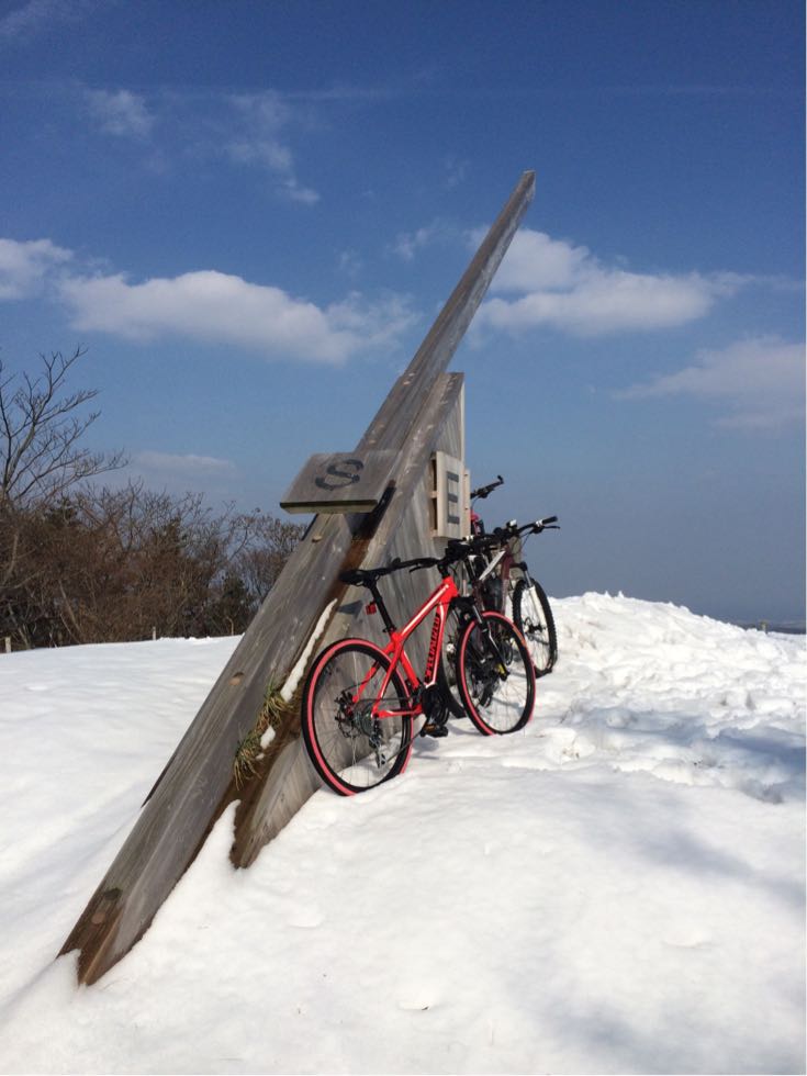 2015/02/11 Category : MTB 雪山で遊ぼうの会 今日は予定通り雪山ライド。ファミマに集まったメンツは左から先生?、ひしいさん、自分と〜お見送りのドリさんwお見送りありがとうございます!次回は円護寺に行きましょう( ̄▽ ̄)で、止まっているのも寒いのでスタート千代川の左岸側の土手を走り砂見方面へ。で、また砕石場方面へ。予想通りの積雪( ̄▽ ̄)推定5cm。積雪5cmぐらいが結構続きます。滑るたんびにキャッキャ言って楽しい感じ…ここぐらいまでは…白目……もう乗れまてん(T_T)オッすオッすスノーヨガ?オッすオッすスノーヨガ?を繰り返し高低差約200m分ぐらいは手押しで…真夏並みの汗をかきますた…白目そして今、一番ホットな場所の展望台へ上がる手前に到着。そしてまたまたオッすオッすああこの写真いい…途中無駄にあげつつも〜登頂〜( ̄▽ ̄)ああ〜この場所いい〜飽きまへん◎飛んでいきそう…体も冷えてきたので下ります。今日の先生はとても愉快でいつも以上に楽しませてくれます◎あ、そのバイクはベンさんの…白目展望台を下りてからはダウンヒルを楽しみます。まあ、雪でスピードは出ませんが( ̄▽ ̄)ああ、アスファルト…落ち着きますw雪の押し登りでだいぶ疲れたので当初のルートはやめ高路の方へ向かいます。水跳ねハンパなすフェンダー買おう…あ、ベンさん重装汁染み込ませておきました…白目河原のラーメン屋で飯って〜千代川の土手ではしゃいで〜円通寺坂越えて〜ブキミー越えて〜終了\(^o^)/だっくだくのビッチョビッチョのグッチョグッチョになりましたがかなり面白かったです。皆さんお付き合いありがとうございますた\(^o^)/雪が残っているうちにあと3回ぐらいは雪山ライドへ行きたいデス…白目 [0回]