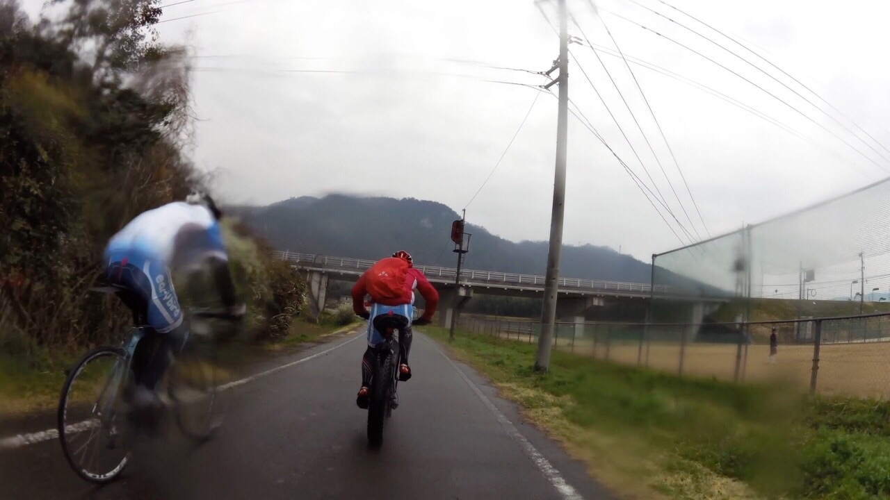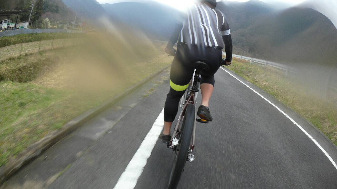 2015/03/30 Category : MTB OCKサイクリングin雲海 OCKサイクリングin雲海に参加してきました。 某所に5時半に待ち合わせ、 先生とひしいさんを乗せ会場を目指します。 コース上最後の激坂部分を車で視察… …白目 こ、これは出しとかなあかんやつや… 会場ついてすぐにトイレへ… この日のマシーンはマングース、MTB!!! シューズはVANS…ERA… スニーカー… まあのんびり走る気だったので… 先生とワイワイ、キャッキャしながら… 二人ずつ20秒間隔でスタートします。 一組前は先生。二組前はITT先生… スタート前はこの並びに特に何も思わなかったな~ 特に何か思ったのは… MTBを試乗してもらった後… ギアが前後インナーにしてあった事… ギアが前後インナーにしてあった事… ギアが前後インナーにしてあった事… フロントは三枚あって、 通勤コースの風車の激坂でもフロント三枚目使うことないのに… 気づかなかったら 釈迦釈迦釈迦釈迦釈迦釈迦…がいつまで続いた事やら… このお礼はいつか必ず…S君… ITT先生がスタートし、先生もスタートし 自分の番… スタート後、 落ち着いてギアをあげ… 落ち着いてギアをあげ… 落ち着いてギアをあげ… 待っていただいた先生に追いつきます. コースをざっと説明しますと 最初500メートルぐらい下り、 平坦を走り、適度に?上がったり下ったりを繰り返し 最後に400メートル一気に上がるというおおよそ50kmのコース. 下りが怖くて嫌いな自分は、始まる前から最初の下りが心配でした… しかし通勤コースの風車下りの成果もあり割とすんなり下れました. MTBのおかげっていうのも大ですね◎ ドリさんの動画を見ても平気ってレベルになりたい…白目 前を走る先生の水しぶきがガンガン目に口に入ってきます… サングラス、サングラス… とバックポケットをあさるがありません… 教訓…悪天候の時はサングラス&マスクを忘れない. 結局この日は後ろにピタリはナカッタトデス… いつのまにやらミッションがITT先生を追え!!! になっております… ワイワイ、キャッキャなんて最初の下りぐらいで その後は心拍ずっと高め… 180前後をいったりきたり… あ~でもイベントってこうのほうが楽しい… 抜かれたら必死になり抜き返す… 闘争心全開がたまらん… ってまだまだ後続車に抜かれませんw 今日はジャージなので漕ぎやすくテンション高め!!! 無駄にでかいリュックもないし快適すぎる◎ ガンガンいきます!!! そして前方にearly birdジャージがが…が… ITT先生ロックオン!!! そして連結!!!(離れ気味) 次のミッションへと!!! FAT&MTB VS ROAD!!! まず先生がかまします!!! 抜いたーーーー!!! がしかし、FAT MUD GUARDのおかげでスピードの伸びがが…が… お逝きなさいのアイズ… そして初めて発射台にセットされましたーーーー!!! ここからは動画で… 抜いた後のITT先生の爆笑が今日1面白かった… このミッション完了後二人は燃え尽きたのであった… そう真っ白に… てボロボロになりながらもなんとかゴールを目指します. 上り区間に入り、最近チラッと目にしたヒルクライムの走り方の記事が 頭によぎります. 急斜面より緩斜面で頑張れ… 今まで逆で緩斜面は休んでましたが、記事通りすると 気持ち先生が離れていった気がします… っていうのもほんの数分で最後はヘたれて抜かされましたが…白目 今まで走り方や練習の本などほぼ読んだことがなかったが ちょっと興味がわきました…微々たる成果のおかげで… 左足がぴくぴくしつつもなんとかゴー--ル!!! 2時間23分49秒!! イベント関係者の皆様、参加された選手の皆様お疲れ様でした!!! 来年もMTBで参加しようと思います!!! では最後に全編を…あ途中バッテリー切れ…白目 [1回]