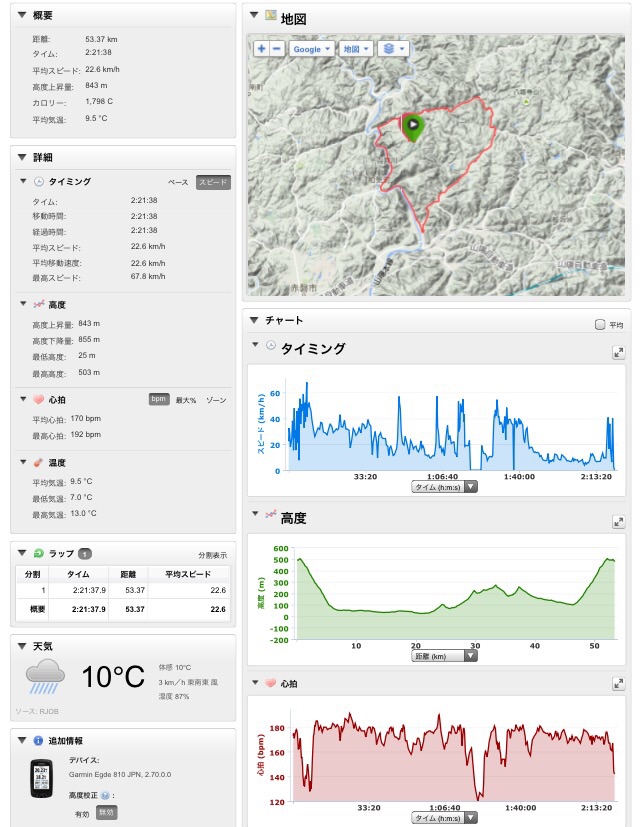 2015/04/01 Category : MTB 3月… 三月…走った…結構…走った… 特に二週目、仕事が暇で暇で… 仕事が早く終わればMTBでうろうろ… ロードで大根島にも行ってみたり… MTBでイベントに参加してみたり… 走行距離…857.66km 獲得標高…12197m そのうちMTBだけのまとめ… 走行距離…557.82km 獲得標高…9463m ほぼMTB… 通勤コースに風車があるっていうのがいいな… そしてフワフワ、メリメリ感が病みつきになっておる… ロード通勤はもう少し暖かくなり行水シーズンになってから… さて今月はなにしよう… 三月は休日家族と過ごした時間も少なかったから 今月は自粛しようと思うけど… ロードで200~250kmぐらいは月一で走りたいし… MTBでも100kmぐらい走ってみたい… 長谷線で徐々に心拍あげ 最後にマックスまで上げるトレーニングもしてみたい… でも一番はツールド大山対策…ちょっと痩せたでしょう( ̄▽ ̄) [0回]